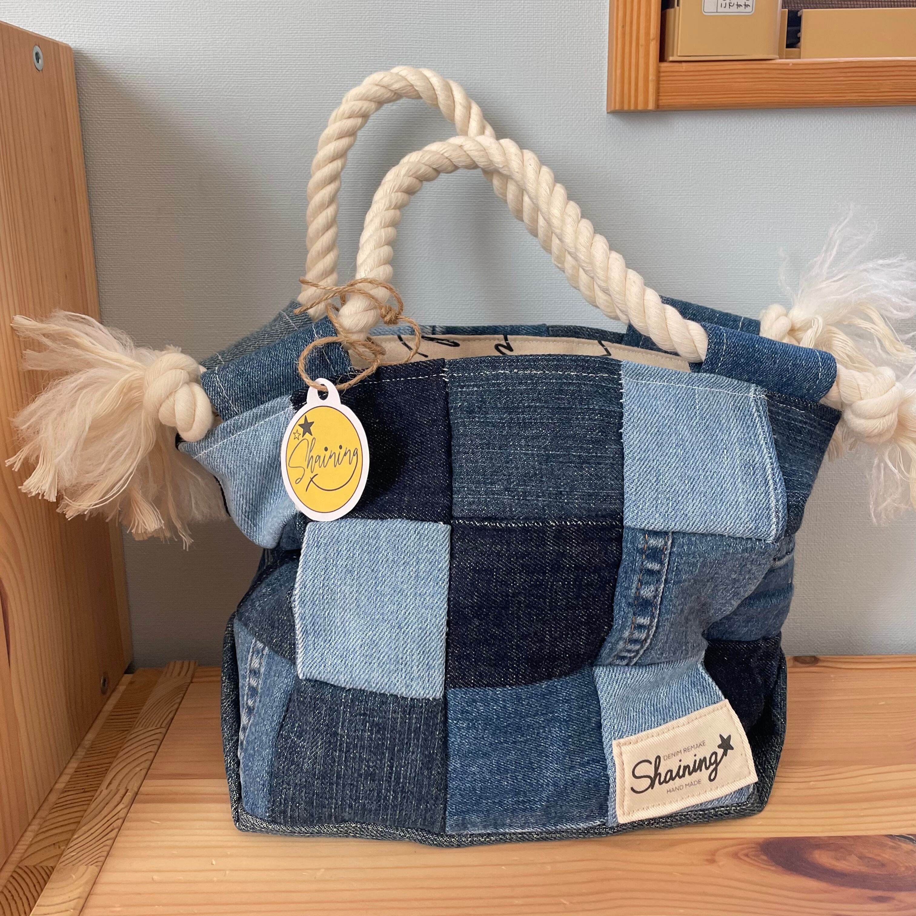 デニムをリメイクし、パッチワークでバックに仕上げました。